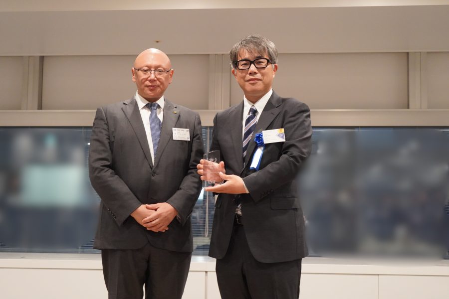 当日は諸先輩企業各位の表彰に続き、株式会社アイ・エス・ビー代表取締役社長 若尾一史様より、プライムパートナーの証として、トロフィーを授与いただきました。